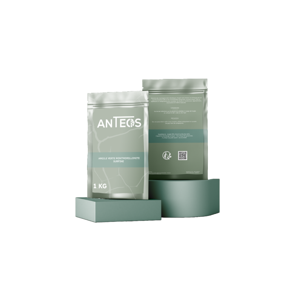 Chez Anteos, nous proposons une argile verte montmorillonite très pure, extraite en Sardaigne et conditionnée en France dans un ESAT. Avec une teneur en montmorillonite de 82 % et une CEC de 74,40 meq/100g, c’est une argile active, souvent utilisée en usage externe pour accompagner le confort musculaire et articulaire.