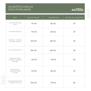 Une fois votre argile reçue, vous accédez à la plateforme privée Anteos. Vous y trouverez des explications claires et progressives pour préparer et appliquer vos cataplasmes, selon les zones concernées, ainsi que des repères de dosage et de durée. En général, une application de 45 minutes à une heure suffit pour profiter pleinement de ce moment de soin, dans une approche respectueuse du corps et du rythme de chacun.
